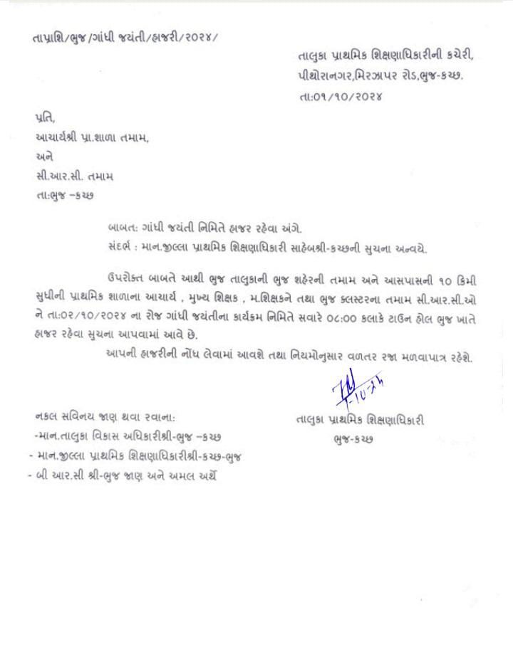 આવતીકાલે હાજર રહેવા બાબત કચ્છ Admin October 1, 2024 Uncategorized Comments આવતીકાલે હાજર રહેવા બાબત કચ્છ