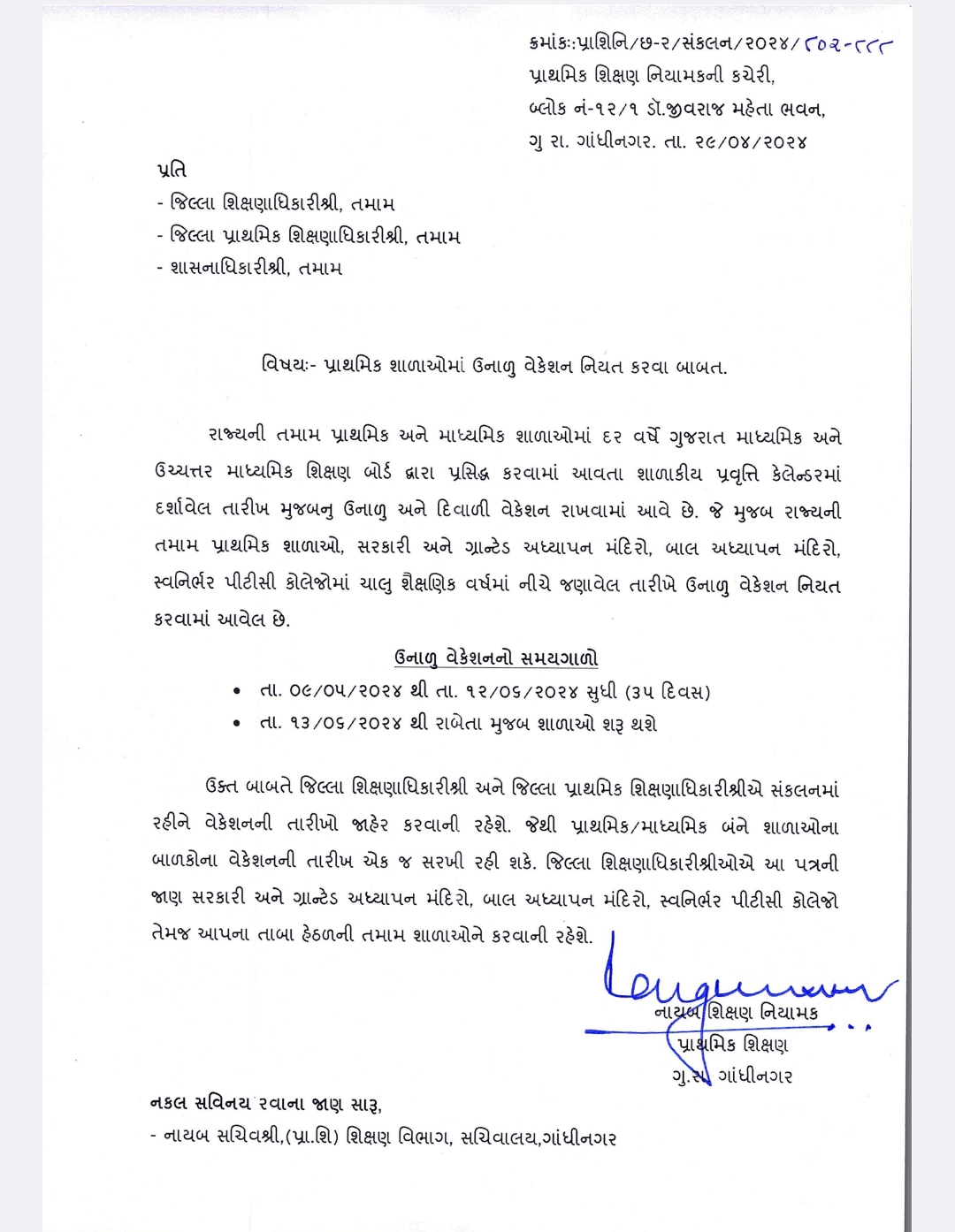 ઉનાળુ વેકેશન જાહેર કરવા બાબત Admin April 29, 2024 Uncategorized Comments ઉનાળુ વેકેશન જાહેર કરવા બાબત