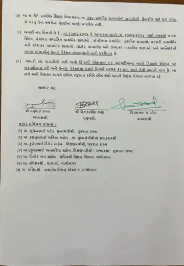 - જેથી તા. 13.06.2024 ને ગુરૂવારનાં બદલે તા. 20.06.2024 સુધી રાજ્યની તમામ જીલ્લા પંચાયત સંચાલિત પ્રાથમિક શાળાઓ, કોર્પોરેશન સંચાલિત પ્રાથમિક શાળાઓ અને સ્વનિર્ભરની તમામ શાળાઓનું ઉનાળું વેકેશન લંબાવવાની તાતી જરૂરીયાત છે.