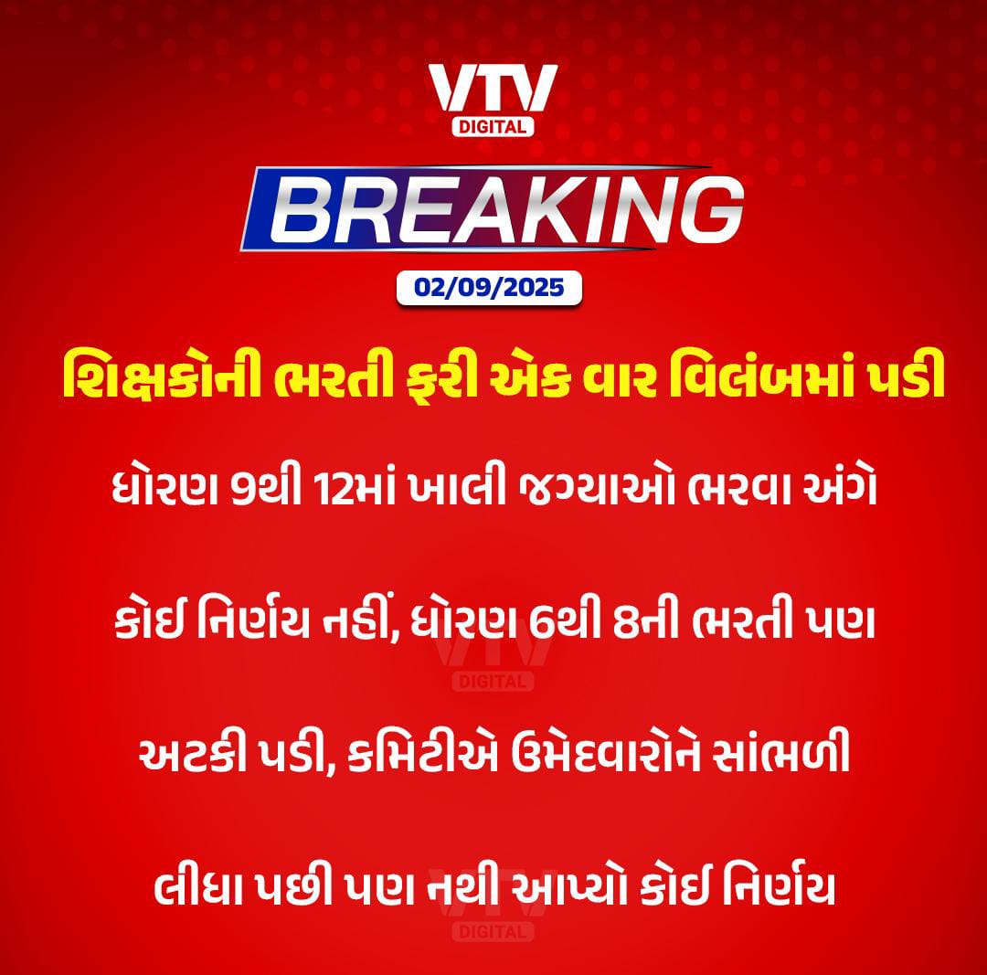 ધો. ૬ થી ૮ અને ૯ થી ૧૨ : શિક્ષકોની ભરતી ફરી વિલંબમાં પડી Admin September 2, 2025 Uncategorized Comments
