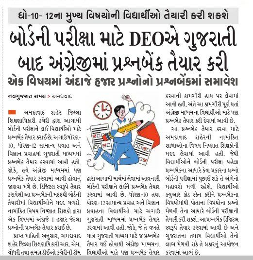 બોર્ડની પરીક્ષા માટે DEOએ ગુજરાતી બાદ અંગ્રેજીમાં પ્રશ્નબેંક તૈયાર કરી એક વિષયમાં અંદાજે હજાર પ્રશ્નોનો પ્રશ્નબેંકમાં સમાવેશ