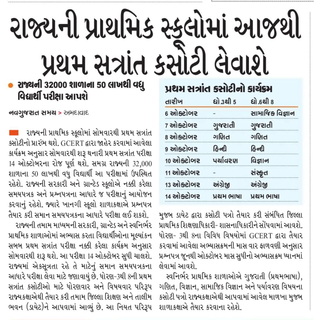 રાજ્યની પ્રાથમિક સ્કૂલોમાં આજથી પ્રથમ સત્રાંત કસોટી લેવાશે Admin October 6, 2025 Uncategorized Comments