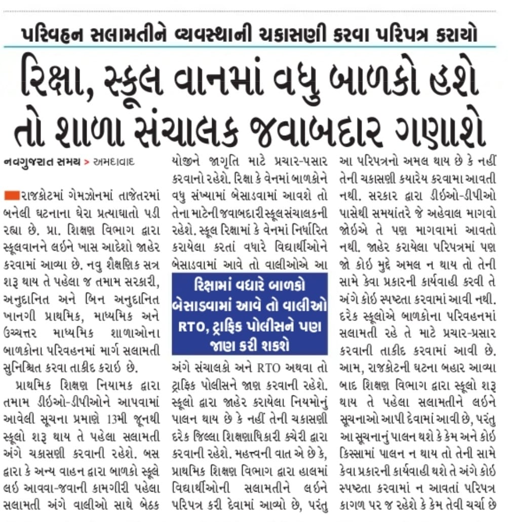 રિક્ષા અને સ્કૂલ વાનમાં વધુ બાળકો હશે તો શાળા સંચાલક જવાબદાર Admin May 30, 2024 Uncategorized Comments