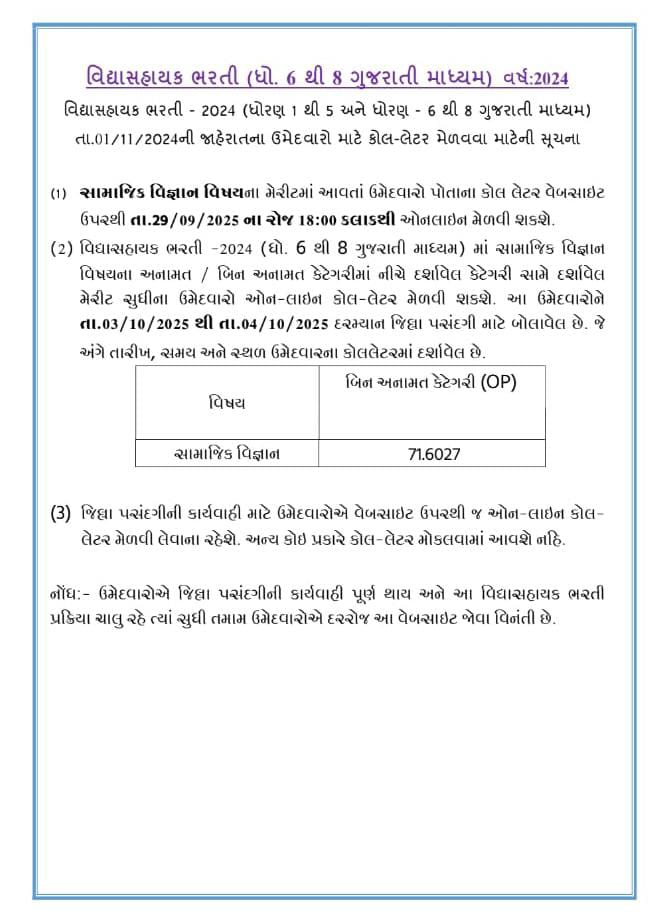 વિધાસહાયક સામાન્ય ભરતી ધો. ૬ થી ૮ : સામાજિક વિજ્ઞાન બીજો રાઉન્ડ જાહેર Admin September 29, 2025 Uncategorized Comments