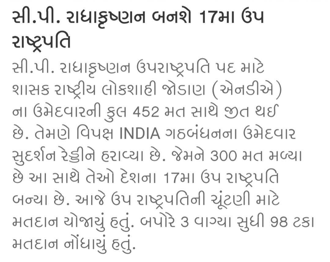 તાજેતરમાં સોશિયલ મીડિયા અને વોટ્સએપ પર એક સમાચાર વાયરલ થઈ રહ્યા છે કે શ્રી સી.પી. રાધાકૃષ્ણનને ભારતના નવા ઉપરાષ્ટ્રપતિ બનાવવામાં આવ્યા છે.