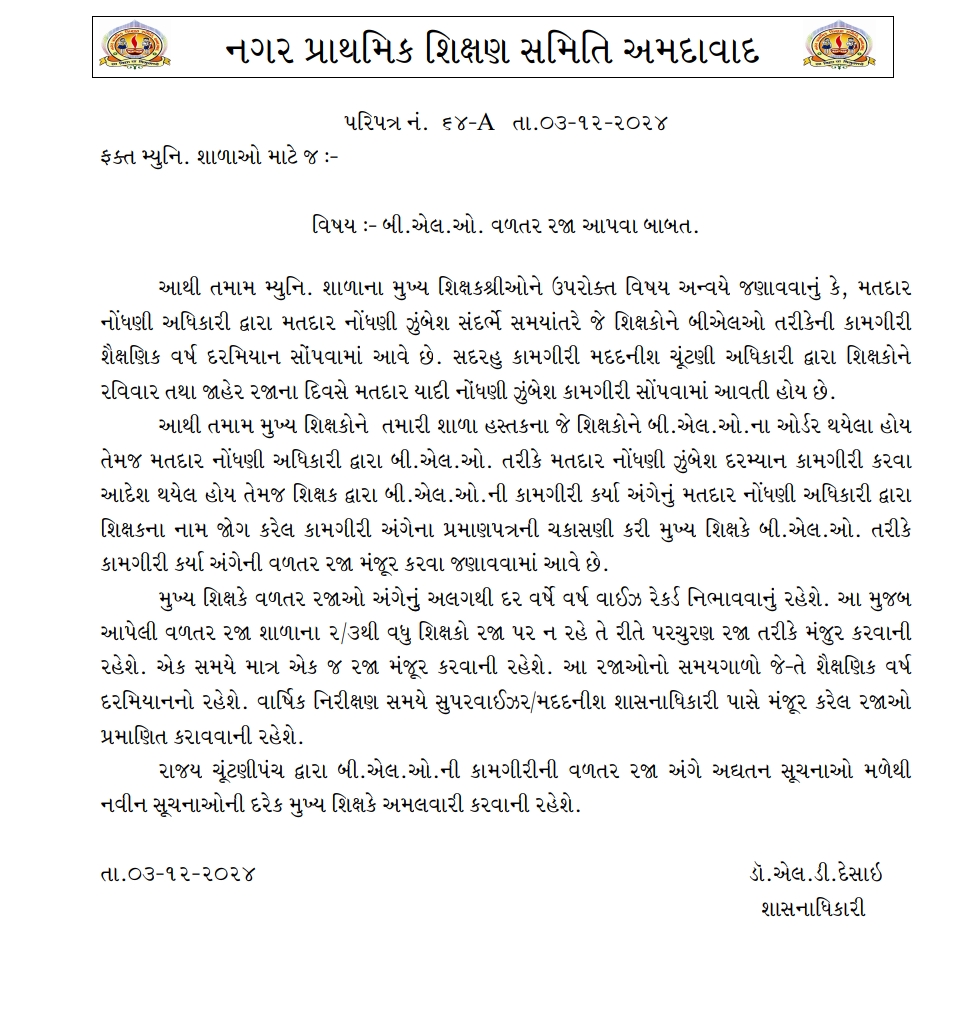 BLO વળતર રજા બાબત ➡️ અમદાવાદ Admin December 5, 2024 Uncategorized Comments BLO વળતર રજા બાબત ➡️ અમદાવાદ