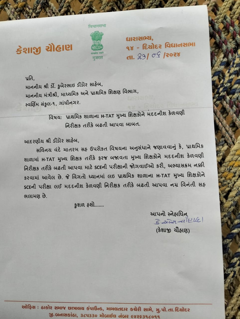 H-TAT બાબતે શિક્ષણ મંત્રી સાહેબને રજૂઆત – પ્રાથમિક શાળાના H-TAT મુખ્ય શિક્ષકોને મદદનીશ કેળવણી નિરીક્ષક તરીકે બઢતી આપવા માટે રજૂઆત