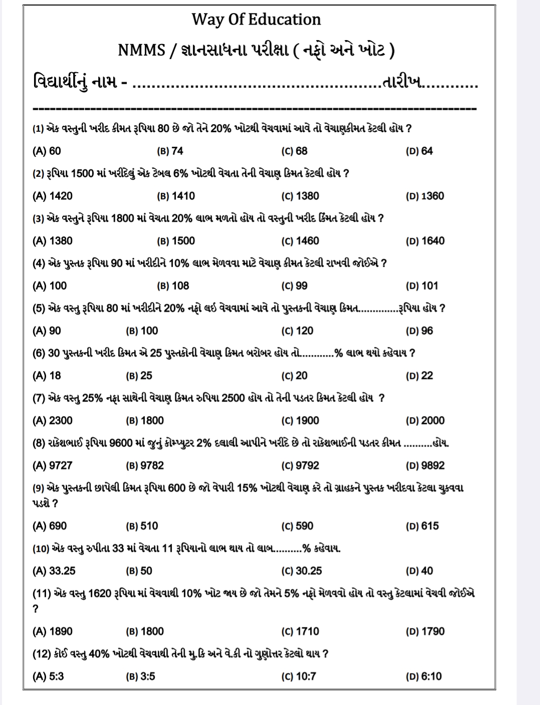 💥🌀🌐 *NMMS અને જ્ઞાનસાધના પરીક્ષા માટે ઉપયોગી પ્રેક્ટિસ પેપર*