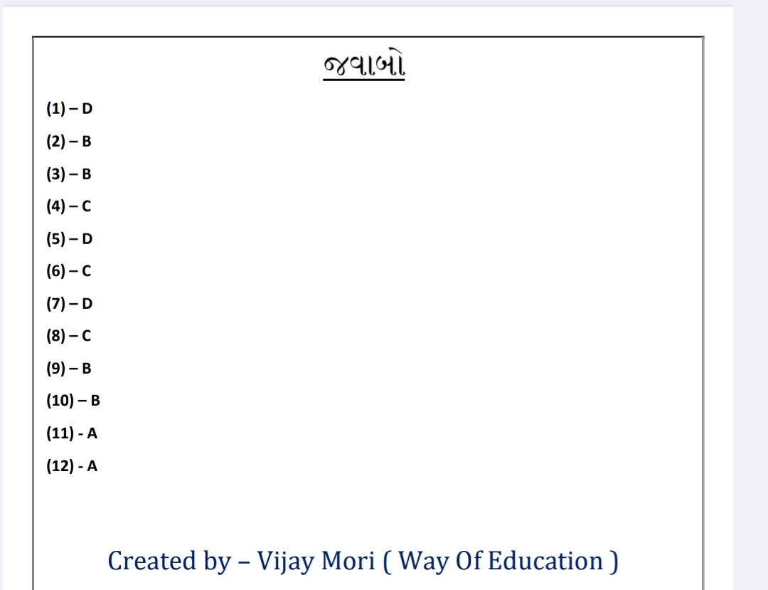 ➡️ *શિક્ષકો અને વિદ્યાર્થીઓ માટે ખૂબ જ ઉપયોગી પેપર – જવાબ સાથે*